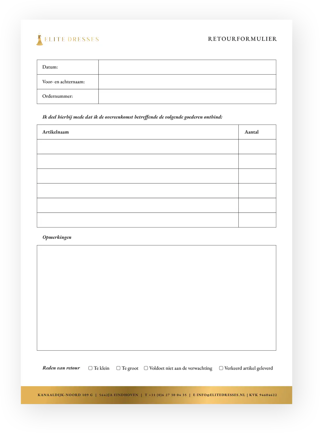 Download hier het retourformulier