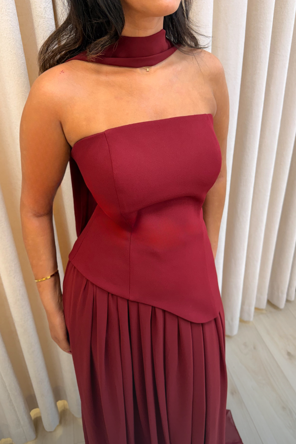 Livina Dress straalt pure elegantie uit. Met haar asymmetrische top en vloeiende plissérok benadrukt ze moeiteloos het vrouwelijke silhouet. De zachte zalm kleur en subtiele glans maken haar perfect voor elke feestelijke gelegenheid.